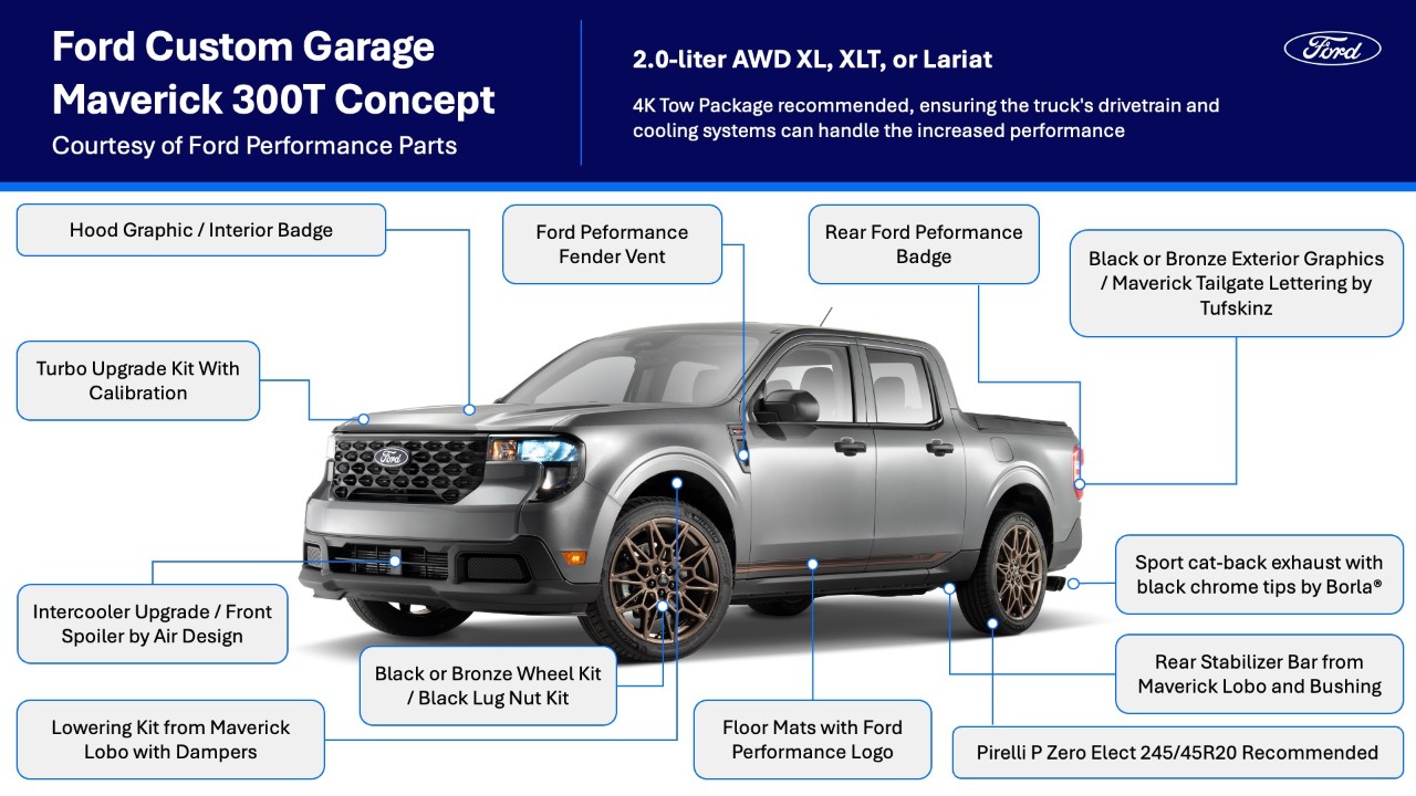 If you're heading to SEMA 2025 in Las Vegas, come by the Ford Performance Parts booth. The Maverick 300T Project Vehicle will be there, and our team will be on hand to walk you through every detail of the package. Ask questions.